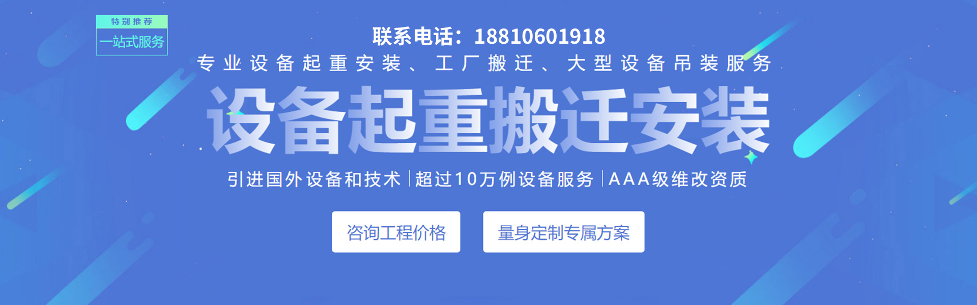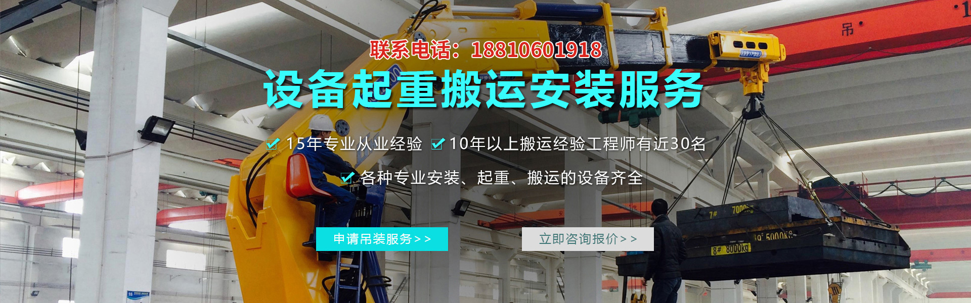 北京久泰起重工程技術(shù)有限公司;成立于2006年是一家現(xiàn)代化起重吊裝搬運(yùn)安裝公司,擅長(zhǎng)于工廠設(shè)備搬遷、精密儀器無(wú)塵車間機(jī)械設(shè)備移位、起重、吊裝、運(yùn)輸、搬運(yùn)、就位、安裝等,公司穩(wěn)健服務(wù)于北京、天津、河北、遼寧等地區(qū),業(yè)務(wù)輻射全國(guó)。 久泰起重主營(yíng)業(yè)務(wù)為設(shè)備起重、托運(yùn)吊裝、精密數(shù)控設(shè)備搬運(yùn)安裝、工...